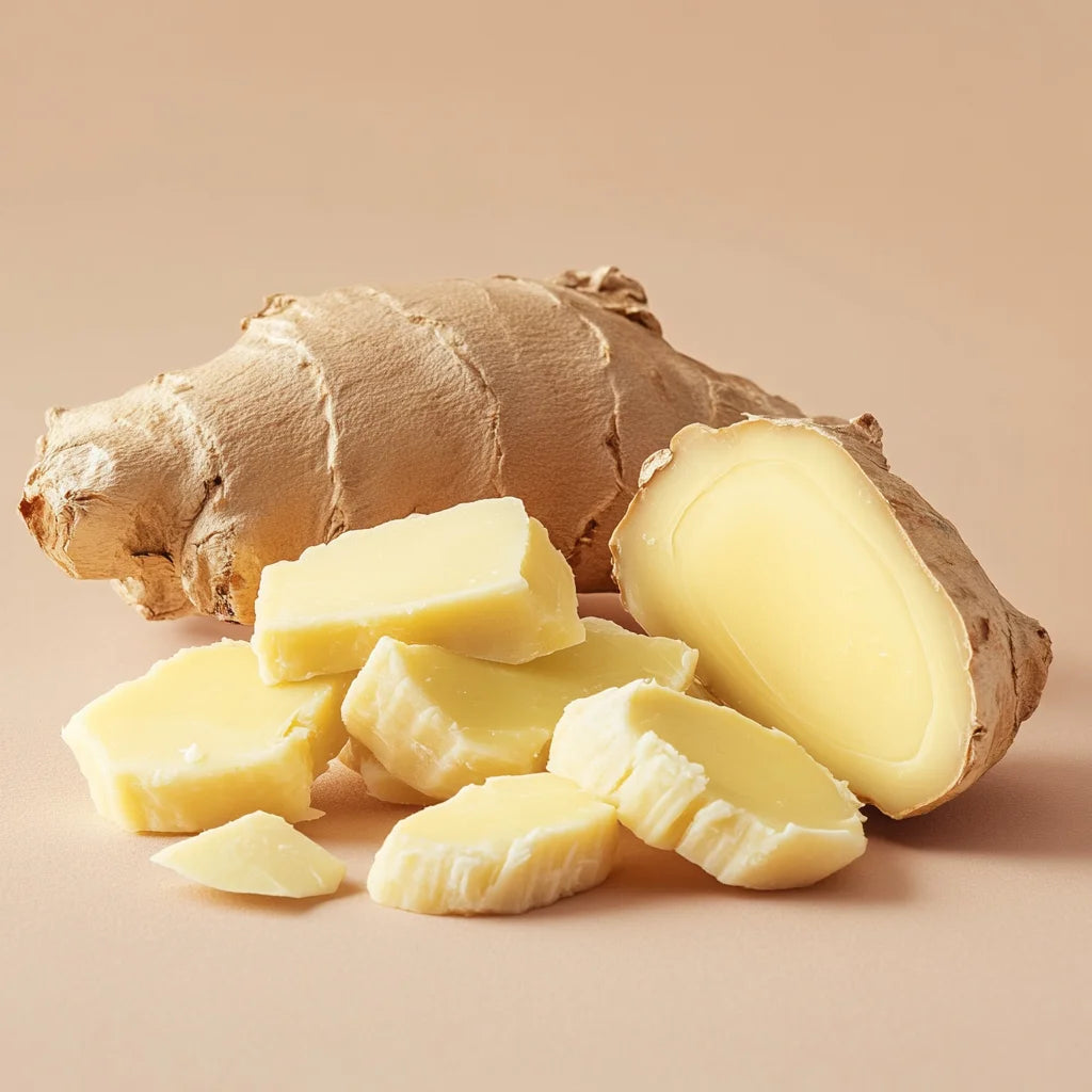 Le gingembre est reconnu pour ses propriétés anti-inflammatoires et antioxydantes, aidant à revitaliser la peau tout en favorisant son éclat naturel.